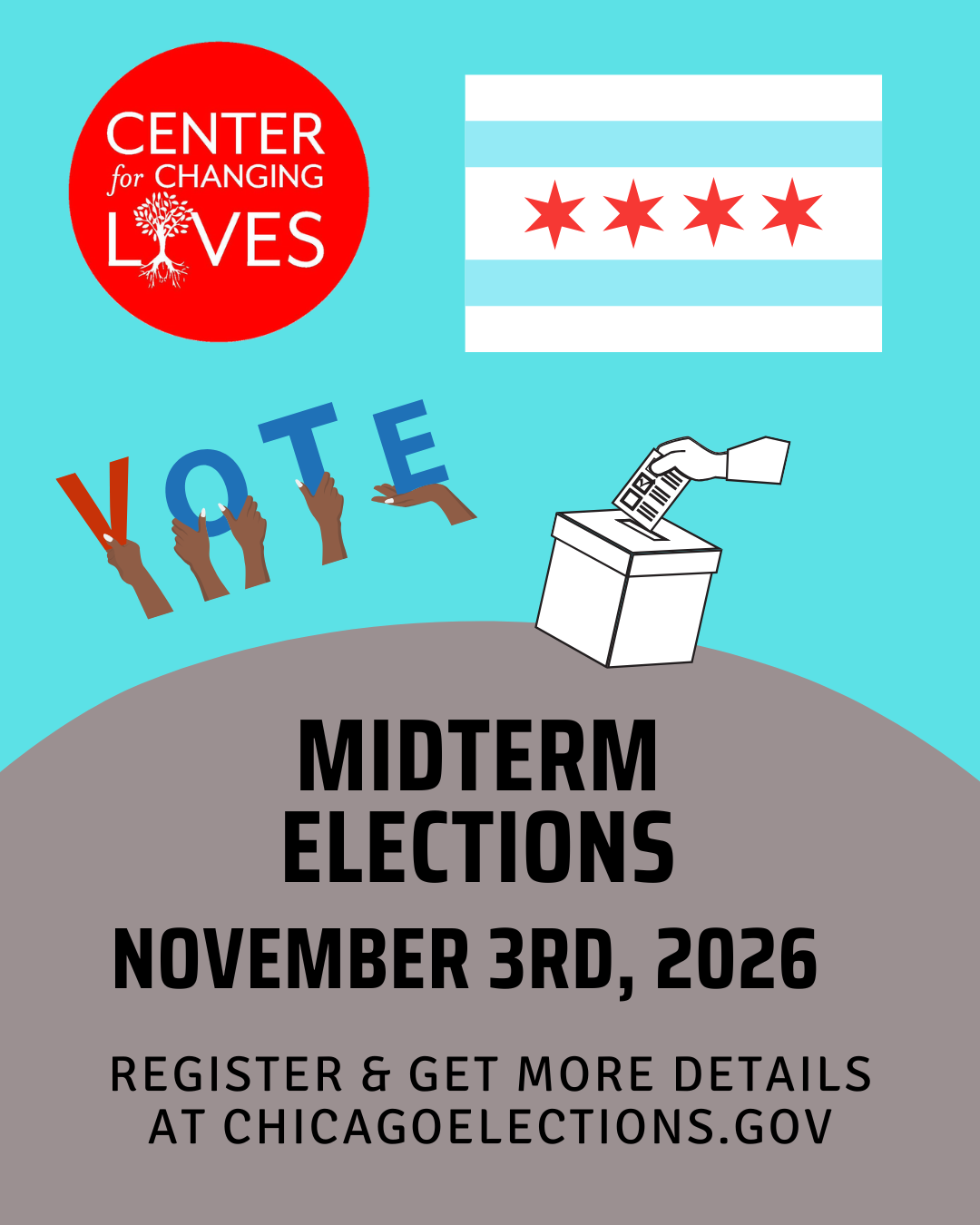 The next election in Chicago is scheduled for November 3rd, 2026! Save the date and make a plan now!
